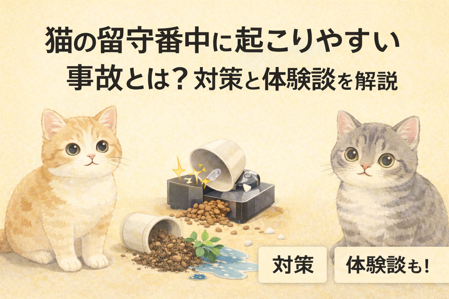 猫の留守番中に起こりやすい事故や、事前にできる対策について知ることができます。