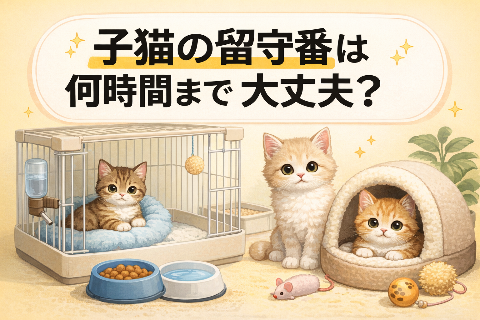 子猫が留守番できる時間の目安や、月齢ごとに注意したいポイント、安心して留守番させるための準備について知ることができます。